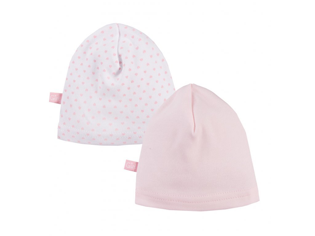 Bavlněná čepice bílá/růžová (2ks) - 68