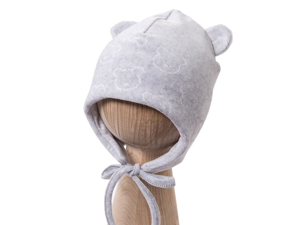 Dětská velurová čepice LITTLE JOY šedá - 68
