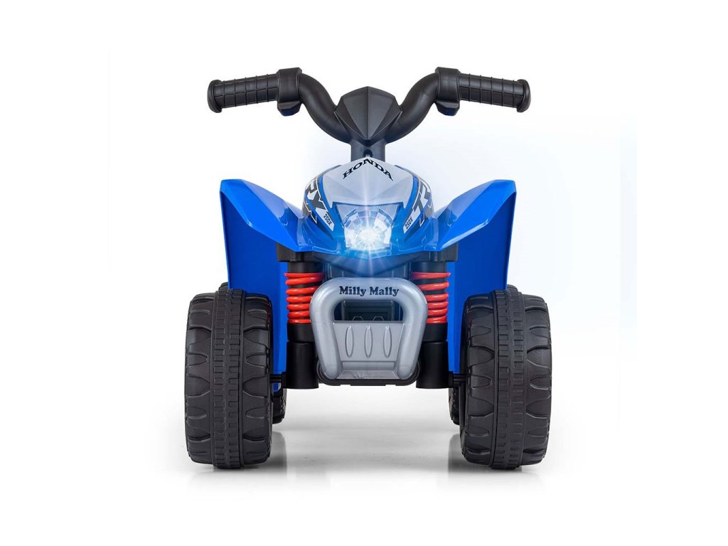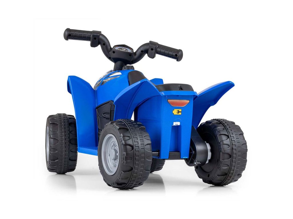Velká, široká kola s terénním dezénem zajišťují mobilitu při výletech mimo domov a tvarované sedadlo poskytuje dostatečný komfort a bezpečnost pro nejmenší uživatele. Stabilitu a odolnost čtyřkolky zaručují ocelové osy kol. Součástí výbavy je i klakson, se kterým bude zábava ještě zajímavější.