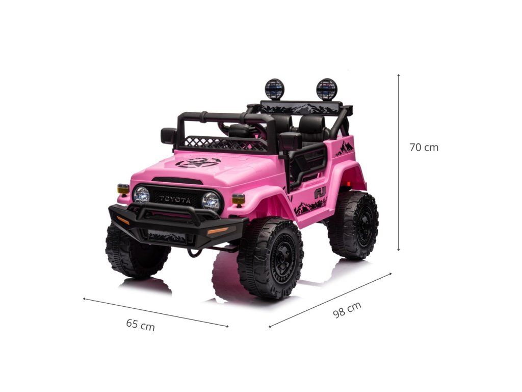 TOYOTA FJ CRUISER poskytne vašemu dítěti skvělou zábavu pro rozvoj motorických dovedností. Je vyrobeno z odolného plastu. Má 12voltovou baterii, dálkové ovládání, přední a zadní světla, zvukové efekty na volantu, dvoje otevírací dveře a bezpečnostní pásy - tím vším se odlišuje od ostatních vozidel tohoto typu a dělá hru ještě zábavnější!