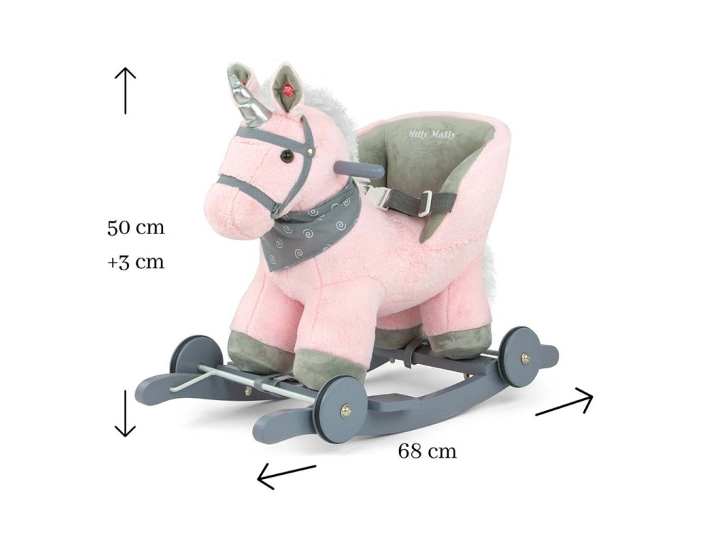 Houpací koník s melodií a kolečky Milly Mally Polly růžový