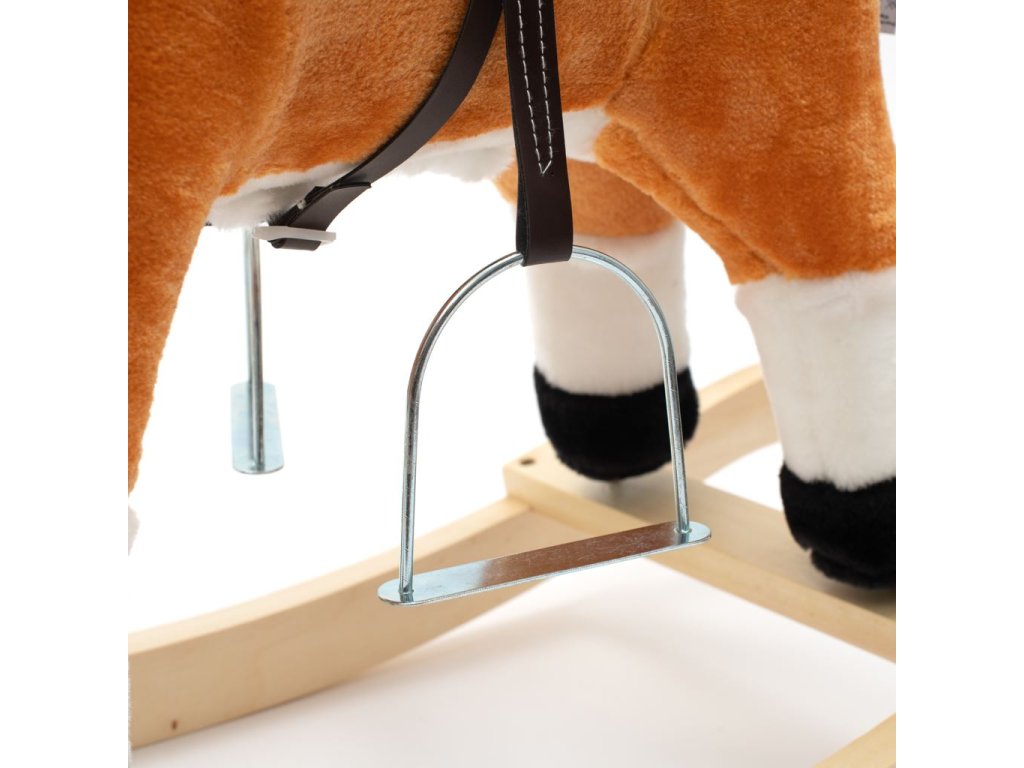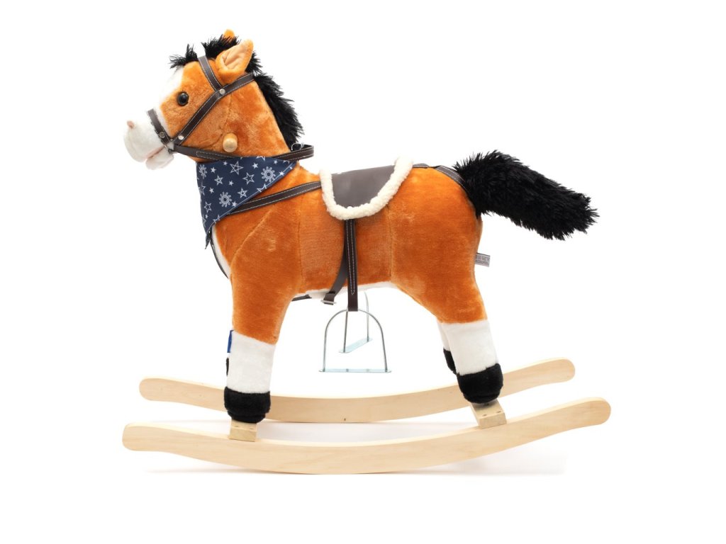 Měkoučký houpací koník Baby Mix byl navržen pro děti, které mají rády dobrodružství. Vypadá jako opravdový, takže se vaše dítě bude cítit jako skutečný jezdec. Koník je vyroben z měkkého plyše, kolem krku má ozdobný šátek a je vybaven dřevěnými houpacími lištami, jejichž profil chrání dítě před převrácením. Pohodlné sedlo, pevná uzda, kovové třmeny, dřevěné rukojeti a stabilní houpací lišty zajistí vašim kovbojům ještě větší stabilitu a pohodlí během houpání. Je vyroben z měkkého plyšového materiálu, pevné dřevěné lišty nebo rukojeti lze snadno odšroubovat. Po stisknutí tlačítek na ouškách koník vrtí ocáskem, hýbe tlamičkou, ozvou se zvuky cvalu, koník zařehtá a zazpívá kovbojskou písničku. Tři potřebné baterie AA 1,5 V se vkládají do pouzdra umístěného na bříšku koníka a nejsou součástí balení. Během houpání se dítě učí koordinovat pohyby svého těla s koníkem, což zlepšuje celkovou rovnováhu a motoriku dítěte.