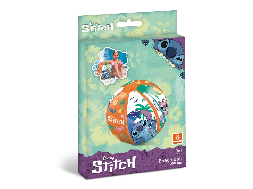 Nafukovací míč o průměru 50 cm s motivem Stitch, je vyroben z kvalitního PVC materiálu.