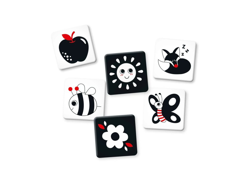 - Podpora zraku – novorozenci vidí nejlépe černobílé a vysoce kontrastní tvary, protože jejich oči ani sítnice ještě nejsou plně vyvinuté. Karty jim pomáhají rozvíjet systém zaostřování očí.