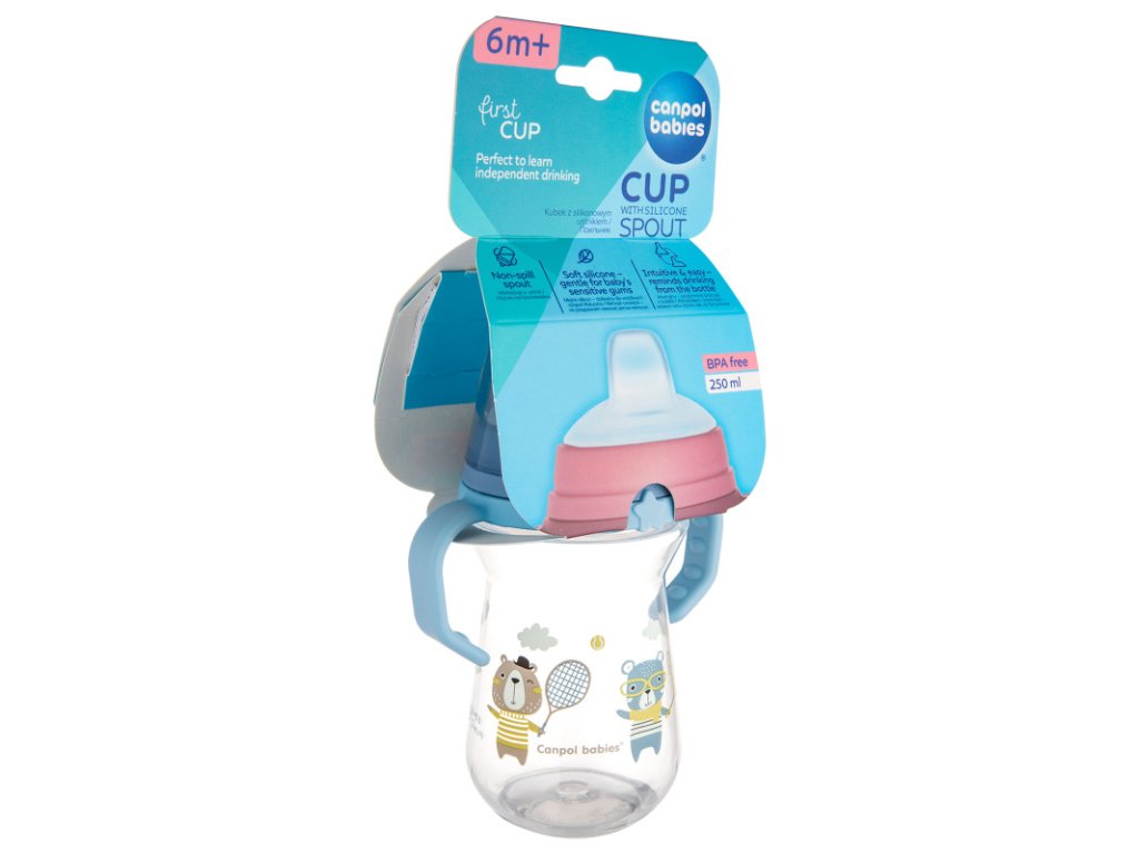 Canpol babies Hrneček se silikonovým pítkem FirstCup BONJOUR PARIS 250ml - modrý