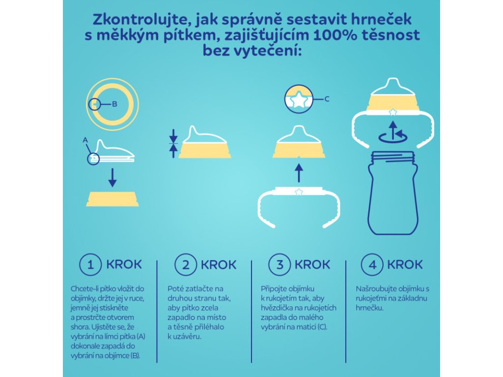 - Perfektní řešení pro naučení se samostatně pít od 6 měsíců věku dítěte díky nevylévacímu pítku, které zabraňuje rozlití. Pítko je nevylévací i když dítě hrneček nakloní nebo upustí.