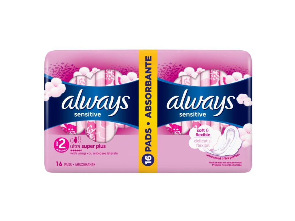 - Always Ultra Super Plus Sensitive mají navíc vrchní vrstvu z výjimečně jemného materiálu, a proto jsou k vaší pokožce maximálně šetrné.