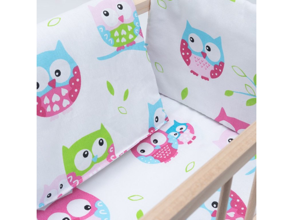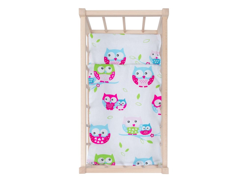 Dřevěná postýlka-kolébka pro panenky s povlečením Baby Mix owl