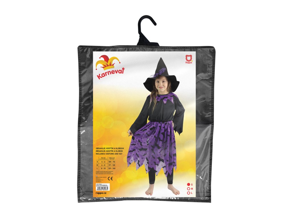 Dětský kostým čarodějnice s netopýry a kloboukem (S)