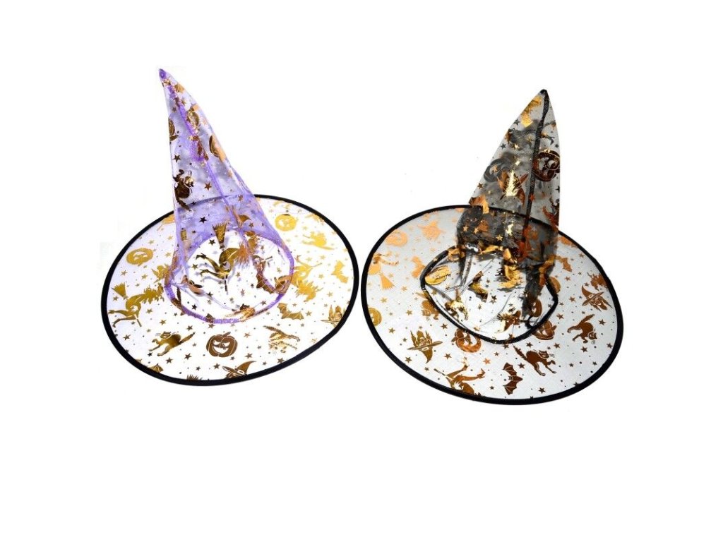 Klobouk na karneval jako doplněk ke kostýmu čarodějnice.