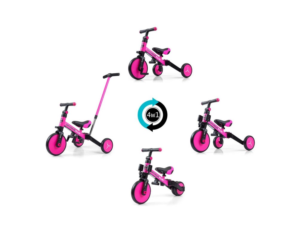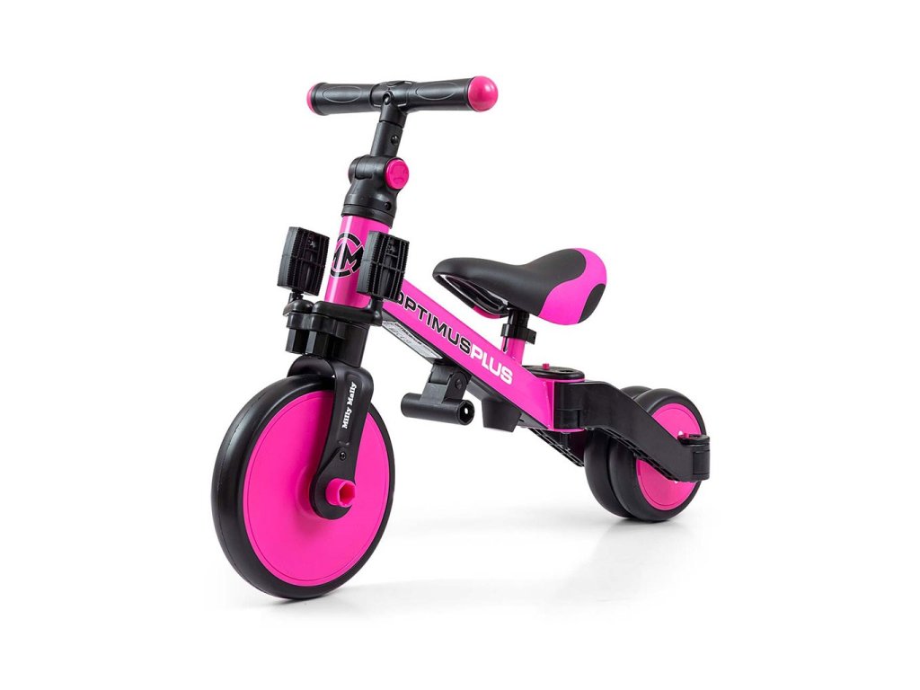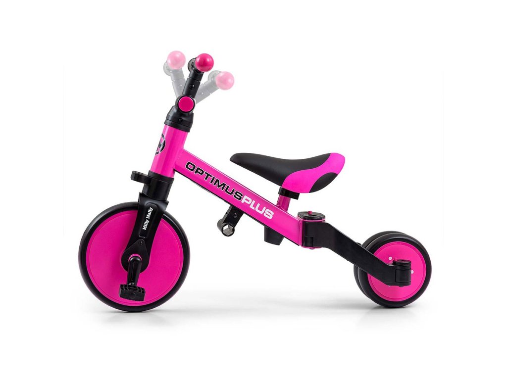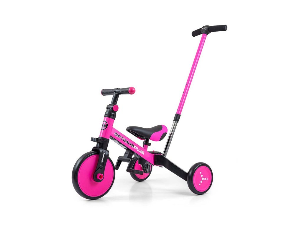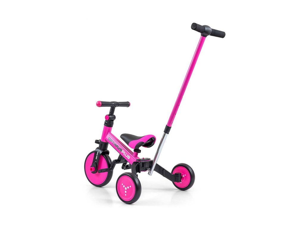Dětská tříkolka 4v1 Milly Mally Optimus Plus s vodící tyčí pink