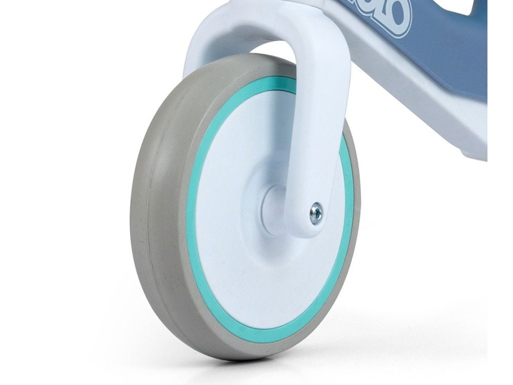 Odolné a vyrobené nejnovější technologií EVA pěny, tichá 7“ kola, která není třeba dofukovat, díky čemuž jsou bezúdržbová. Ergonomické sedlo s měkkou výplní zajišťuje pohodlí vašeho dítěte při jízdě. Protiskluzové rukojeti z měkké gumy zajišťují pevné uchopení a pohodlnou jízdu a omezovač otáčení volantu chrání proti převrácení.