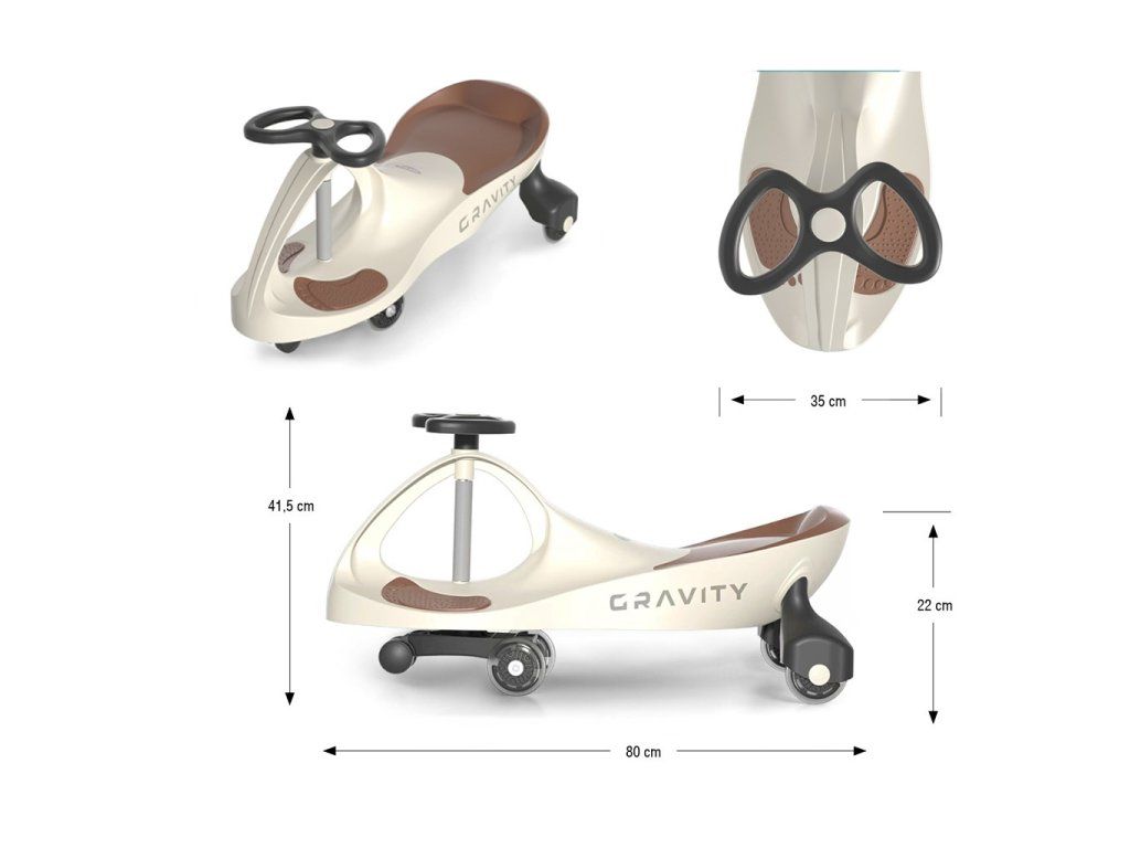Gravitační odrážedlo GRAVITY je moderní dětské odstrkovadlo, které se pohybuje bez baterií a pedálů – stačí otáčet volantem a vozítko se samo rozjede. Ideální volba pro děti od 3 let, které milují pohyb, zábavu a chtějí jezdit samostatně doma i venku.