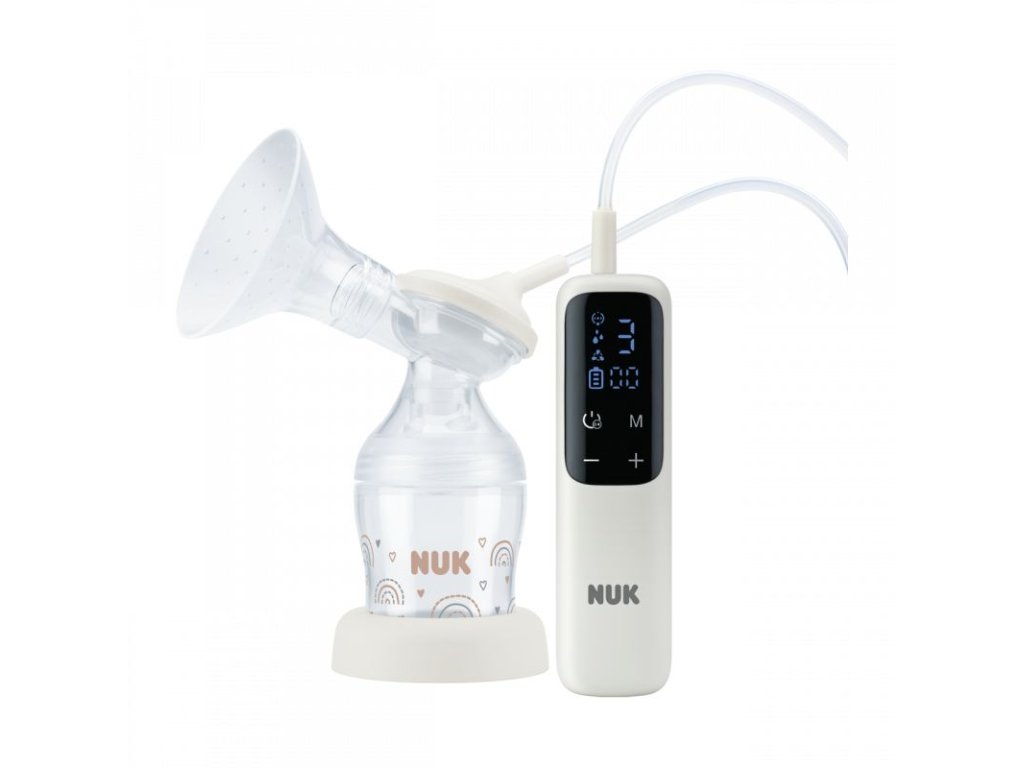 Elektrická odsávačka mateřského mléka na jeden prs NUK Soft & Easy s dobíjecí baterií a měkkými prsními polštářky, včetně kojenecké láhve NUK Perfect Match 150 ml, 1 kus