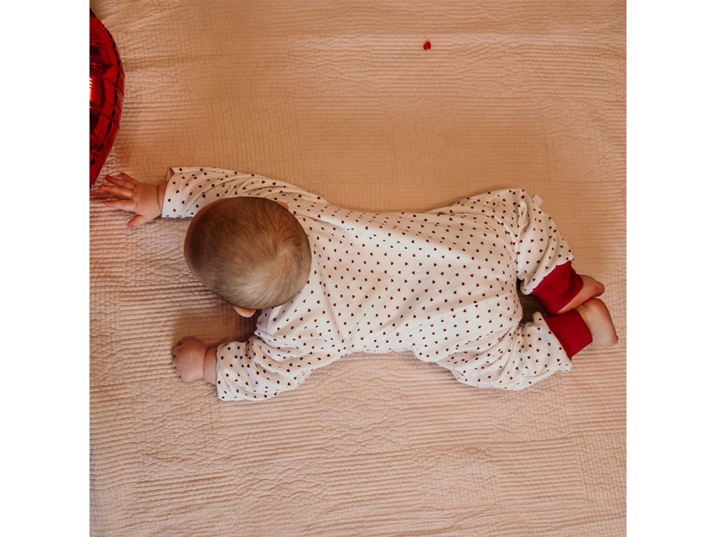 Dětský overal bez nožiček z kolekce "LOVE ". Skvělé pro děti, které se v noci rády odkrývají během spánku. Overaly pro novorozence jsou velmi pohodlné jak pro rodiče, tak i pro dítě.