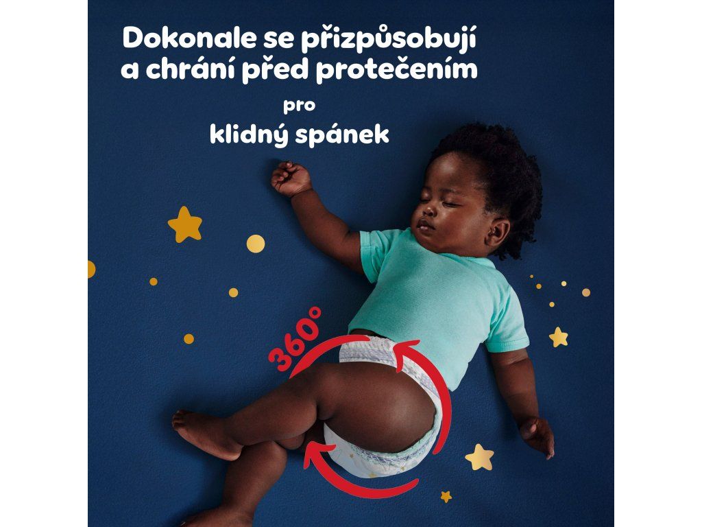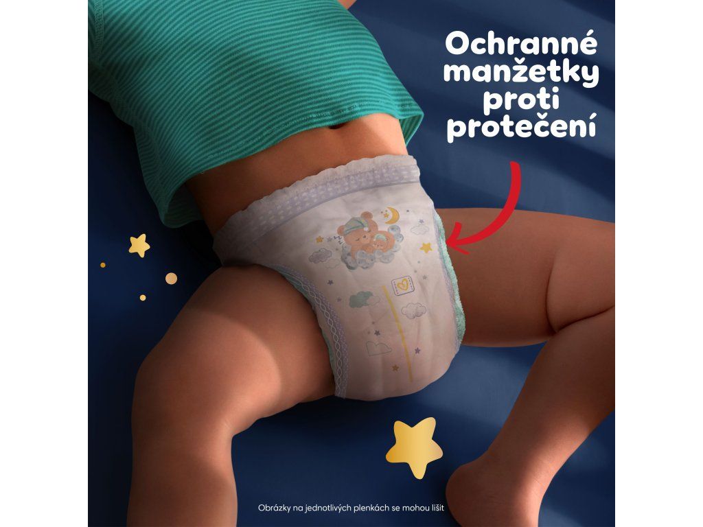Plenkové kalhotky Pampers Night Pants jsou hebké a pružné, takže se vždy přizpůsobí vašemu dítěti. Pohodlně se navlékají a při přebalování se na stranách dají roztrhnout, což zaručí snadnou výměnu.