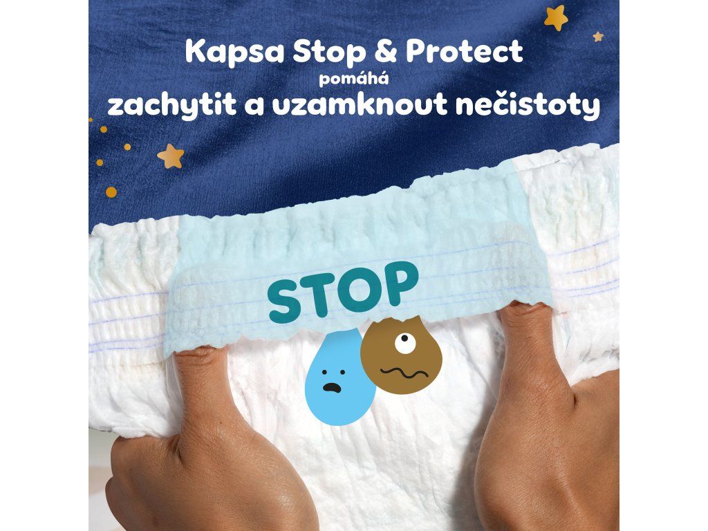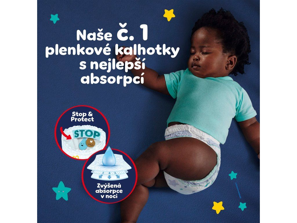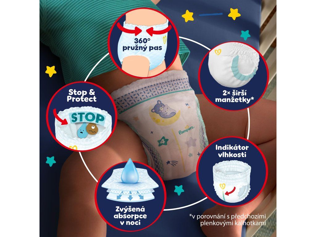 - Zesílené jádro - Okamžitě absorbuje více* tekutiny pro až 12hodinovou extra ochranu proti protečení. *v porovnání s běžnými plenkovými kalhotkami Pampers.