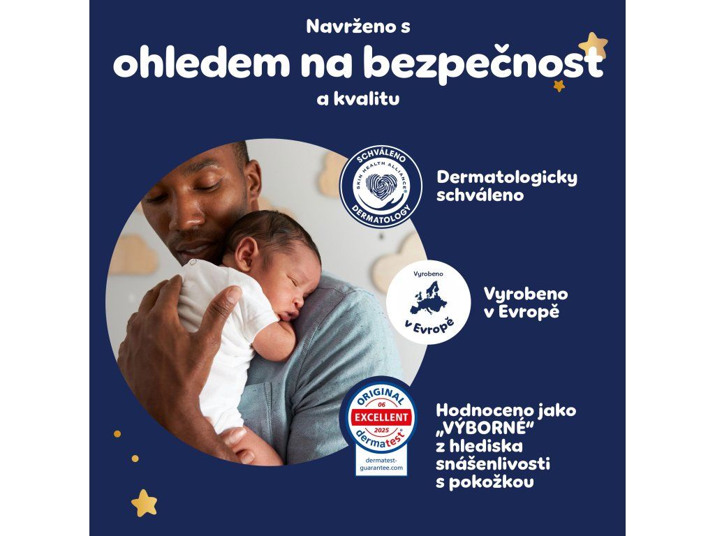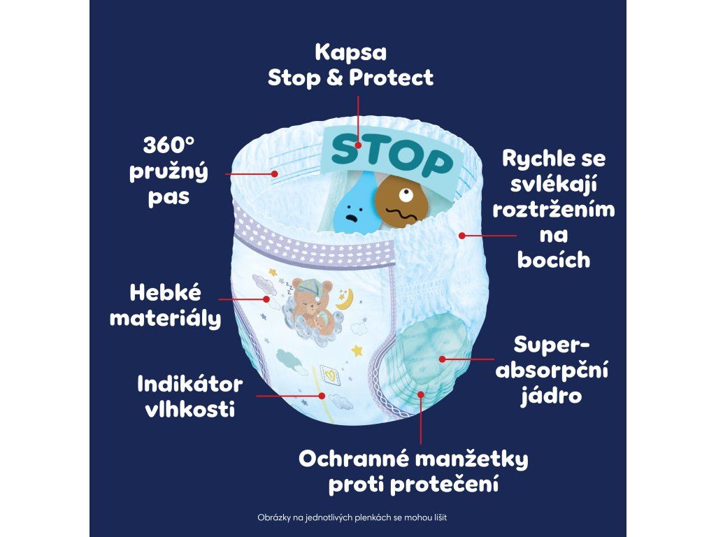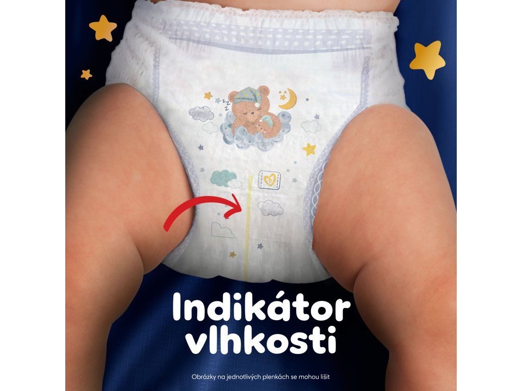 - Indikátor vlhkosti a roztomilé noční motivy - Indikátor vlhkosti zmodrá, když je třeba plenku vyměnit.