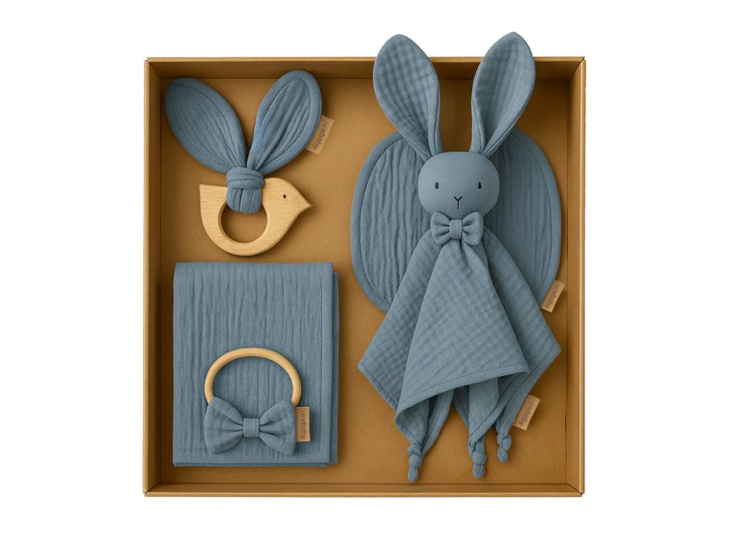 Výjimečný dárkový box značky New Baby je vytvořen s láskou pro ty nejmenší. Perfektní volba pro Baby Shower, přivítání novorozence nebo jako dárek k jakékoli speciální příležitosti. Obsahuje čtyři pečlivě vybrané doplňky vyrobené z nejjemnější 100% organické mušelínové bavlny a bezpečného bukového dřeva – vše certifikováno a v souladu s evropskými normami.