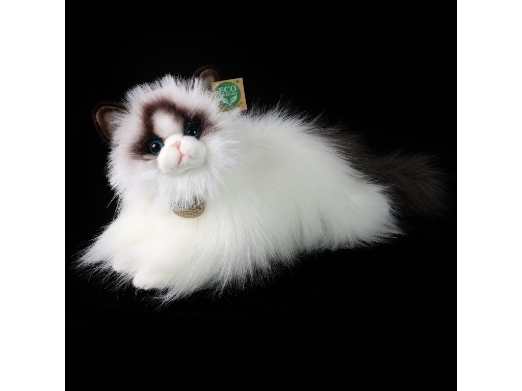 Plyšová kočka rasy Ragdoll měří 38 cm a díky těm nejkvalitnějším materiálům se řadí do Exkluzivní kolekce plyšových hraček značky Rappa. Díky ručnímu zpracování každého kusu navíc vypadá jako živá. Proč označení ECO-FRIENDLY? Rappa si je vědoma všech dopadů na životního prostředí, zaměřuje se na udržitelnost a omezení používání plastů na minimum. Proto je výplň hraček vyrobena z recyklovaných materiálů, zejména PET lahví. Ta je však zcela nezávadná a vhodná i pro děti od narození. FUN FACT: Věděli jste, že všechny ragdoll kočky mají výrazné modré oči, což je jeden z jejich charakteristických rysů?