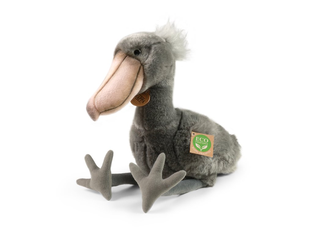 Plyšový člunozobec měří 30 cm a díky těm nejkvalitnějším materiálům se řadí do Exkluzivní kolekce plyšových hraček značky Rappa. Díky ručnímu zpracování každého kusu navíc vypadá jako živý. Proč označení ECO-FRIENDLY? Rappa si je vědoma všech dopadů na životního prostředí, zaměřuje se na udržitelnost a omezení používání plastů na minimum. Proto je výplň hraček vyrobena z recyklovaných materiálů, zejména PET lahví. Ta je však zcela nezávadná a vhodná i pro děti od narození. FUN FACT: Věděli jste, že člunozobec dokáže stát naprosto nehybně i několik hodin, dokud se kořist nepřiblíží?