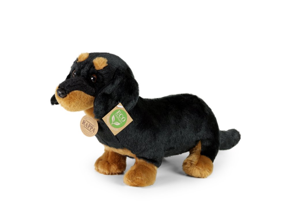 Plyšový pes rasy jezevčík měří 32 cm a díky těm nejkvalitnějším materiálům se řadí do Exkluzivní kolekce plyšových hraček značky Rappa. Díky ručnímu zpracování každého kusu navíc vypadá jako živý. Proč označení ECO-FRIENDLY? Rappa si je vědoma všech dopadů na životního prostředí, zaměřuje se na udržitelnost a omezení používání plastů na minimum. Proto je výplň hraček vyrobena z recyklovaných materiálů, zejména PET lahví. Ta je však zcela nezávadná a vhodná i pro děti od narození. FUN FACT: Věděli jste, že jezevčíci mají silný hrabací instinkt?