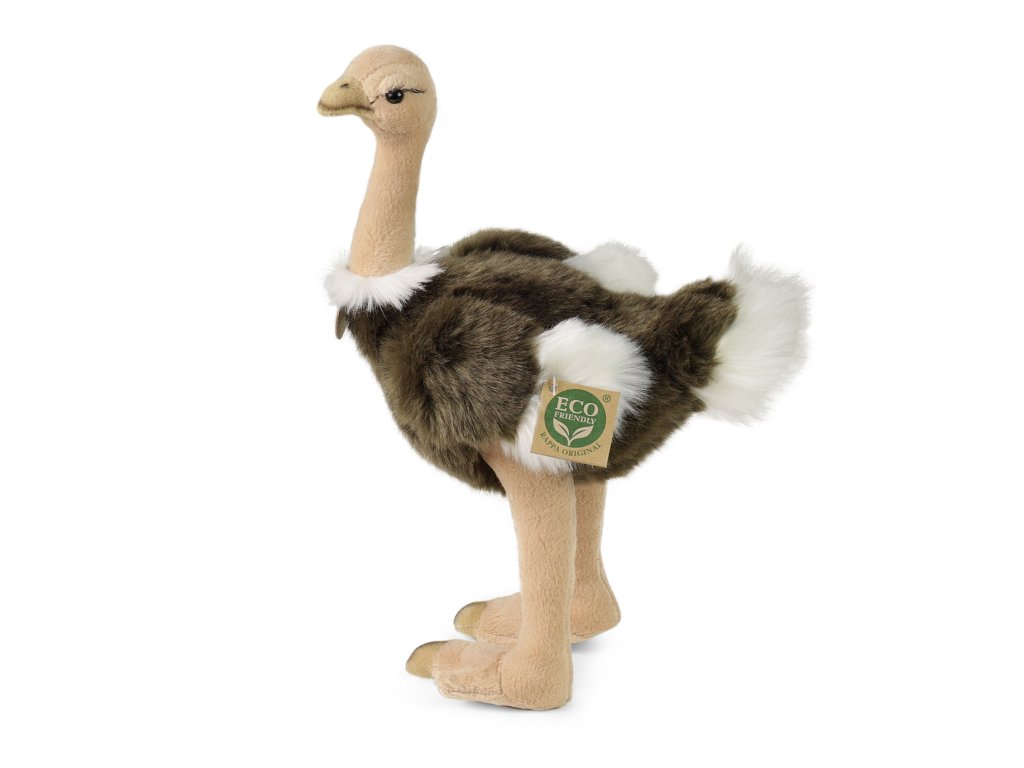 Plyšový pštros měří 32 cm a díky těm nejkvalitnějším materiálům se řadí do Exkluzivní kolekce plyšových hraček značky Rappa. Díky ručnímu zpracování každého kusu navíc vypadá jako živý. Proč označení ECO-FRIENDLY? Rappa si je vědoma všech dopadů na životního prostředí, zaměřuje se na udržitelnost a omezení používání plastů na minimum. Proto je výplň hraček vyrobena z recyklovaných materiálů, zejména PET lahví. Ta je však zcela nezávadná a vhodná i pro děti od narození. FUN FACT: Věděli jste, že pštrosi spí jen krátce a často vsedě, takže jsou pořád bdělí a připravení utéct?