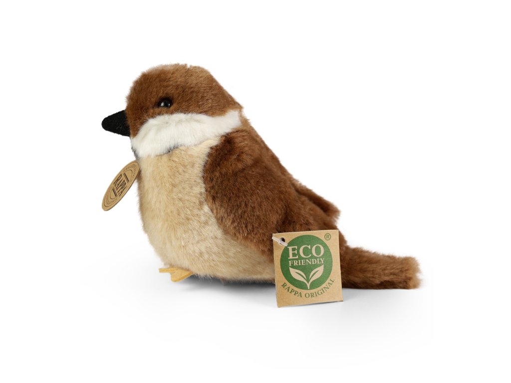 Plyšový vrabec ve velikosti 13 cm je vyroben z exkluzivní, velmi kvalitní plyše. Tento plyšový kousek je součástí exkluzivní kolekce plyšových hraček RAPPA. Co to vlastně ECO-FRIENDLY znamená? Výplň plyšové hračky je vyrobena z recyklovaných PET lahví. Tento materiál je zcela bezpečný, na omak nerozeznatelný od standartní výplně a plně atestovaný pro bezpečnost i těch nejmenších. Rozhodli jsme se jít zelenou cestou co nejméně zatěžující životní prostředí- cestou ECO-FRIENDLY.