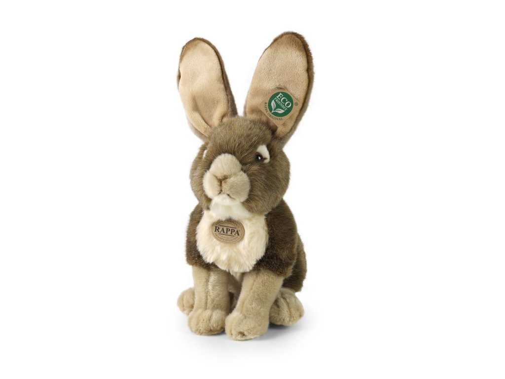 Sedící plyšový zajíc o velikosti 30 cm. Zajíc je vyroben z vysoce kvalitní plyše a je tak součástí exkluzivní kolekce plyšových hraček RAPPA. Co to vlastně ECO-FRIENDLY znamená? Výplň plyšové hračky je vyrobena z recyklovaných PET lahví. Tento materiál je zcela bezpečný, na omak nerozeznatelný od standardní výplně a plně atestovaný pro bezpečnost i těch nejmenších. Rozhodli jsme se jít zelenou cestou co nejméně zatěžující životní prostředí- cestou ECO-FRIENDLY.