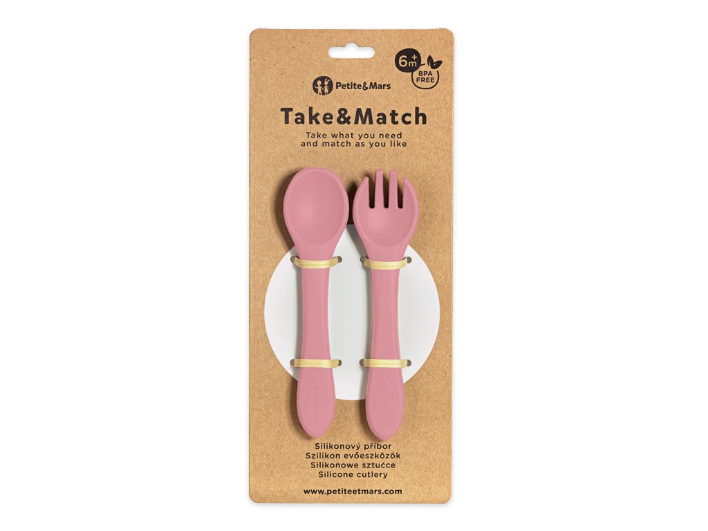PETITE&MARS Silikonový příbor Take&Match - Dusty Rose