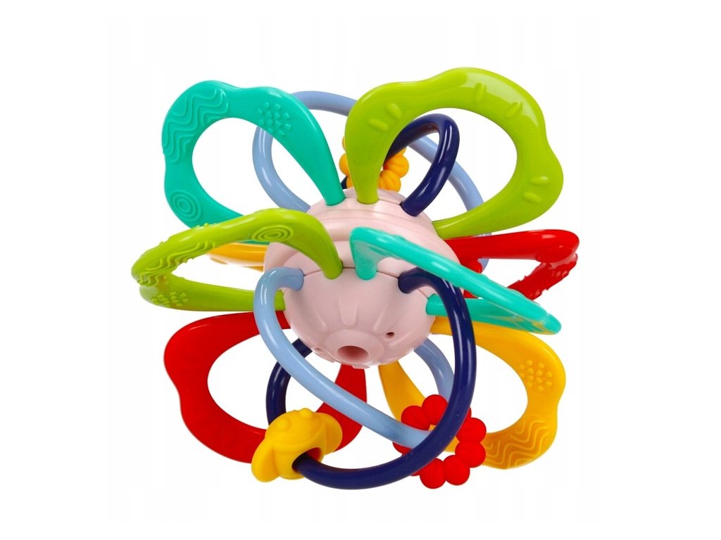 - Toto pestrobarevné kousátko, vyrobené z měkkých kroužků různé tloušťky a textury, je také ideální pro učení se, jak uchopit a manipulovat, a zároveň stimulovat manuální dovednosti a smysl pro dotek .