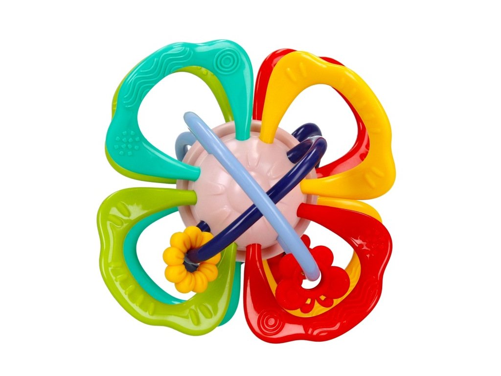 - Batole může hračku snadno držet, třepat s ní, aby vydávalo zvuky, a otáčením míče pohybovat kroužky na ní.