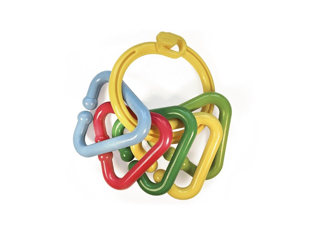 Veselé chrastítko s pěti barevnými přívěšky je určeno pro ty nejmenší.