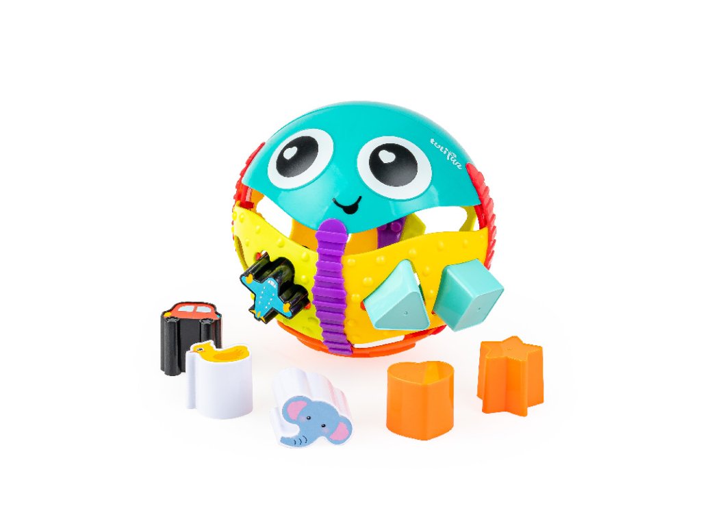 Kachna, letadlo, nebo třeba trojúhelník? Vyberte si kostku a najděte správný otvor, kterým ji umístíte do míče! Tato vzdělávací hra pomůže batolatům rozvíjet kognitivní dovednosti a vztahy příčiny a následku. Sada obsahuje texturovaný míč s otvory a také kostky různých tvarů a barev pro hraní a učení. Chcete-li kostky z míče vyjmout, jednoduše ho nakloňte a je znovu připraven ke hře!