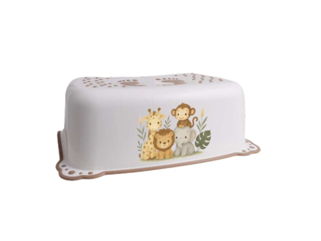Podnožka pro dítě od Maltex Baby má velkou užitnou plochu. Pro zvýšení přilnavosti výrobku k podkladu byly na jeho okrajích a v celém rozsahu použity protiskluzové gumičky.