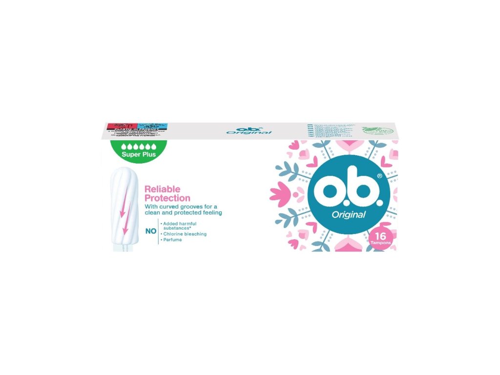 o.b.® Original Super Plus je náš klasický tampon vhodný pro velmi silnou menstruaci . Díky stočeným drážkám poskytuje spolehlivou ochranu a technologie StayDry udržuje šňůrku suchou.